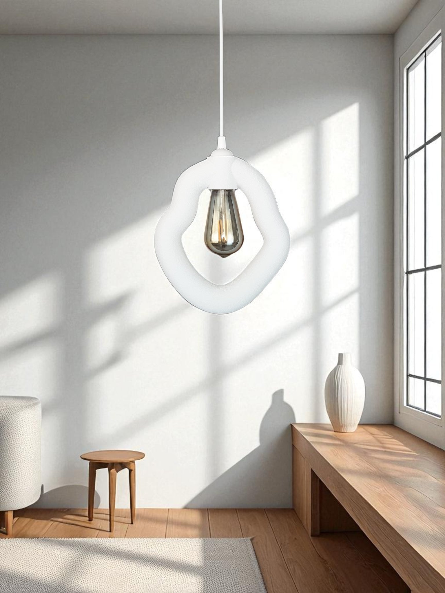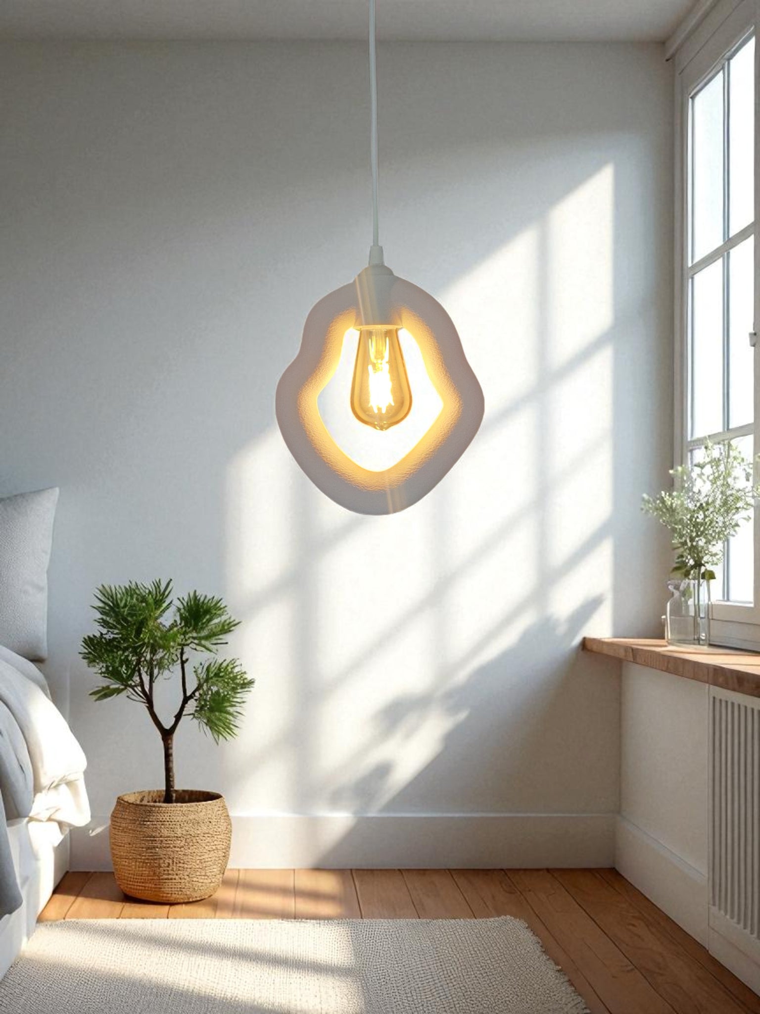 Bohem Beton Görünümlü Avize (Beyaz)
